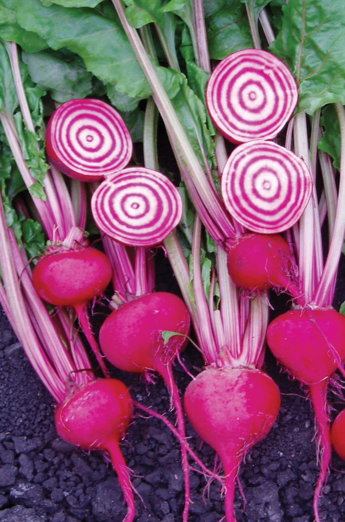 - Red Beet Chioggia ist eine traditionelle italienische Rote Bete mit einer rosafarbenen Haut und attraktiv weiß-rot geringeltem Fleisch.